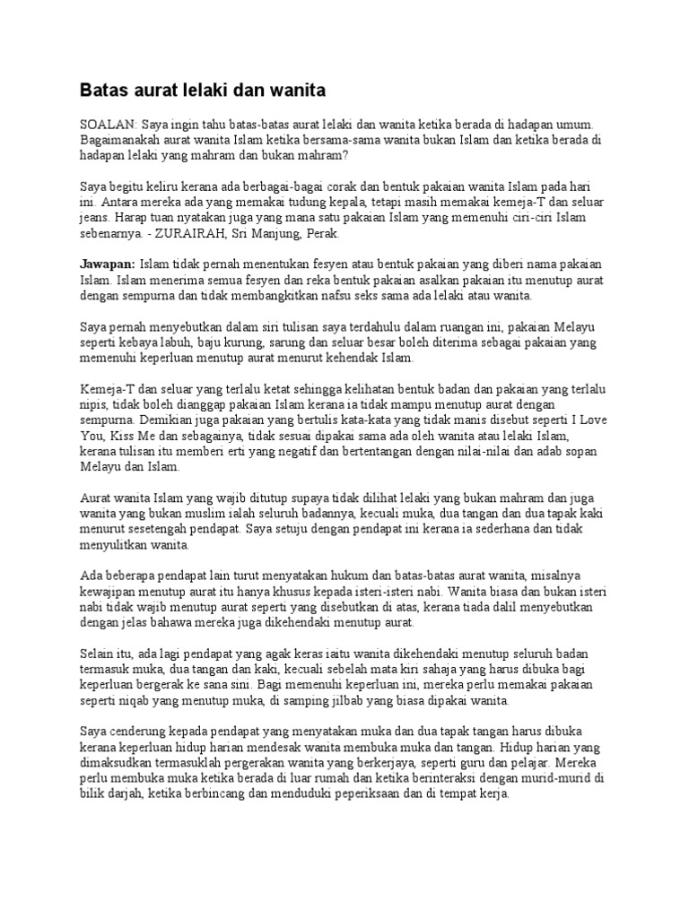 Batas Aurat Lelaki Dan Wanita Pdf