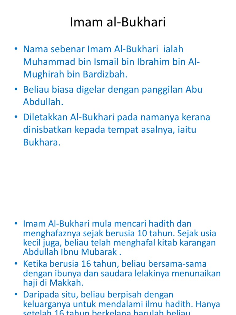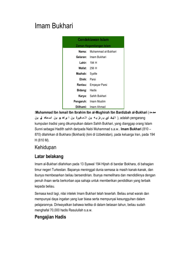 Menghasilkan kitab Sahih al-Bukhari yang menjadi rujukan dalam. 120 minutes in Ramadan only The Arabian Peninsula. Imam al-Bukhari Abu Abdillah imam ahli hadis atau amir al-Mukminin dalam hadis.